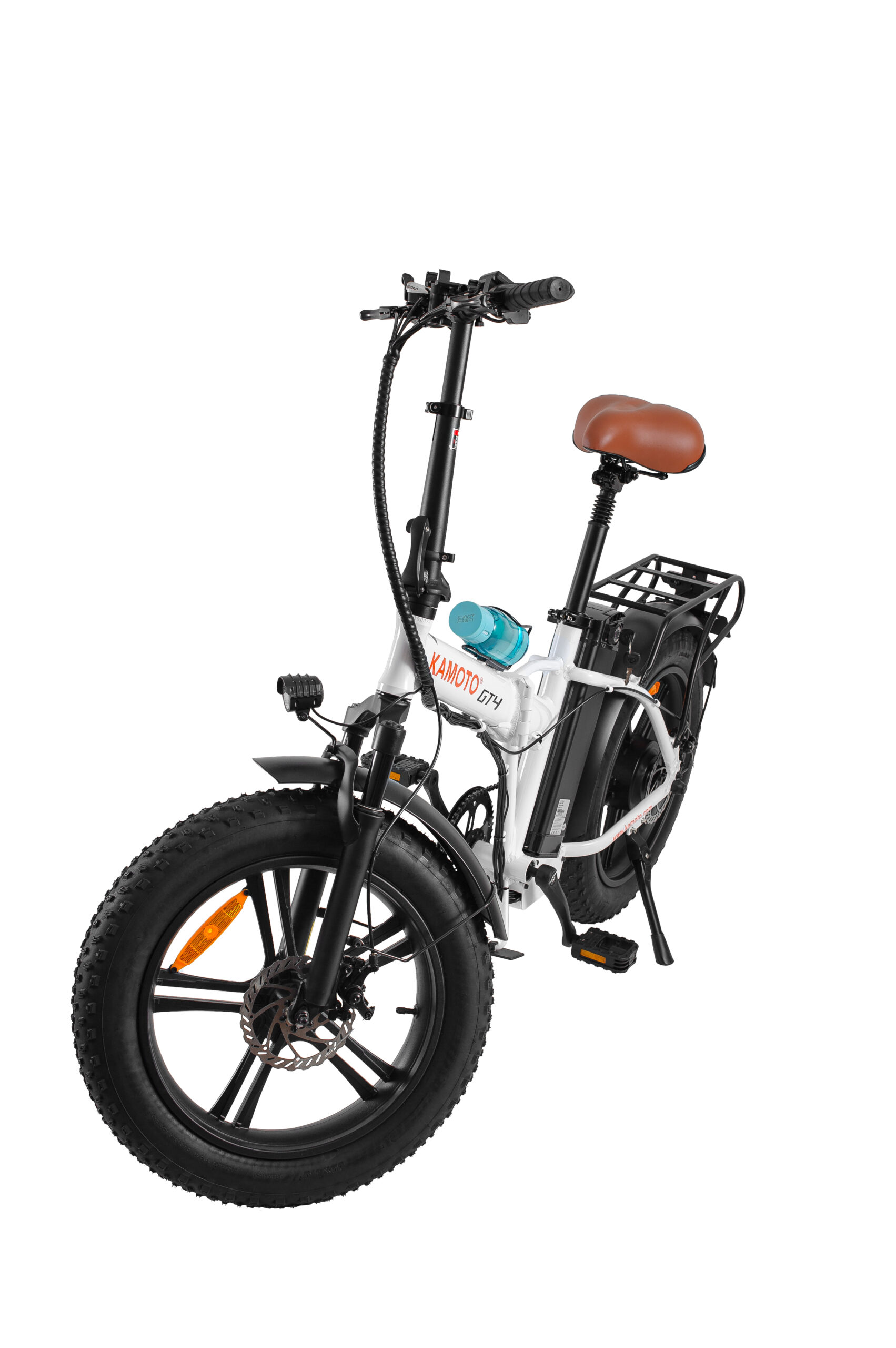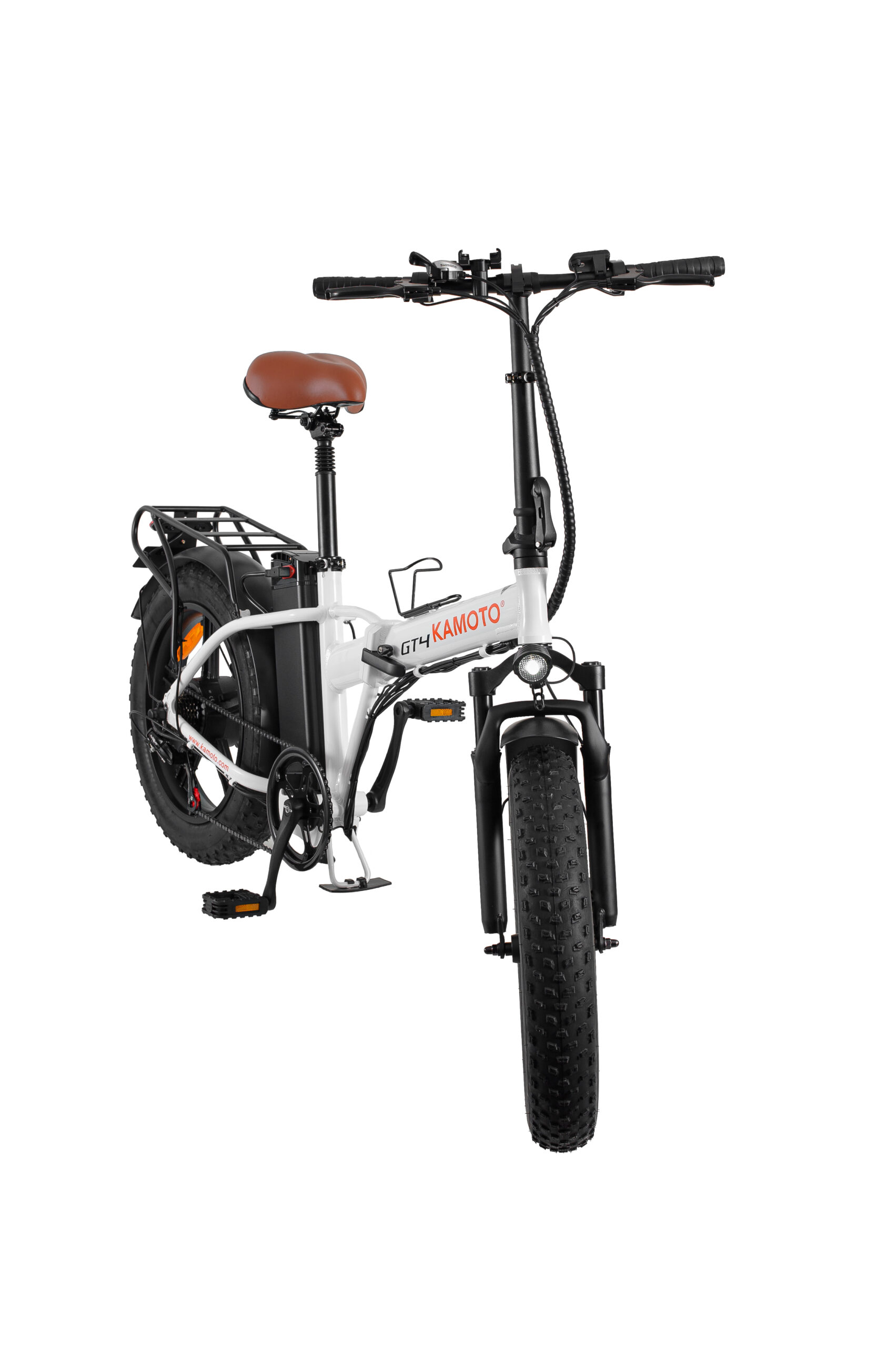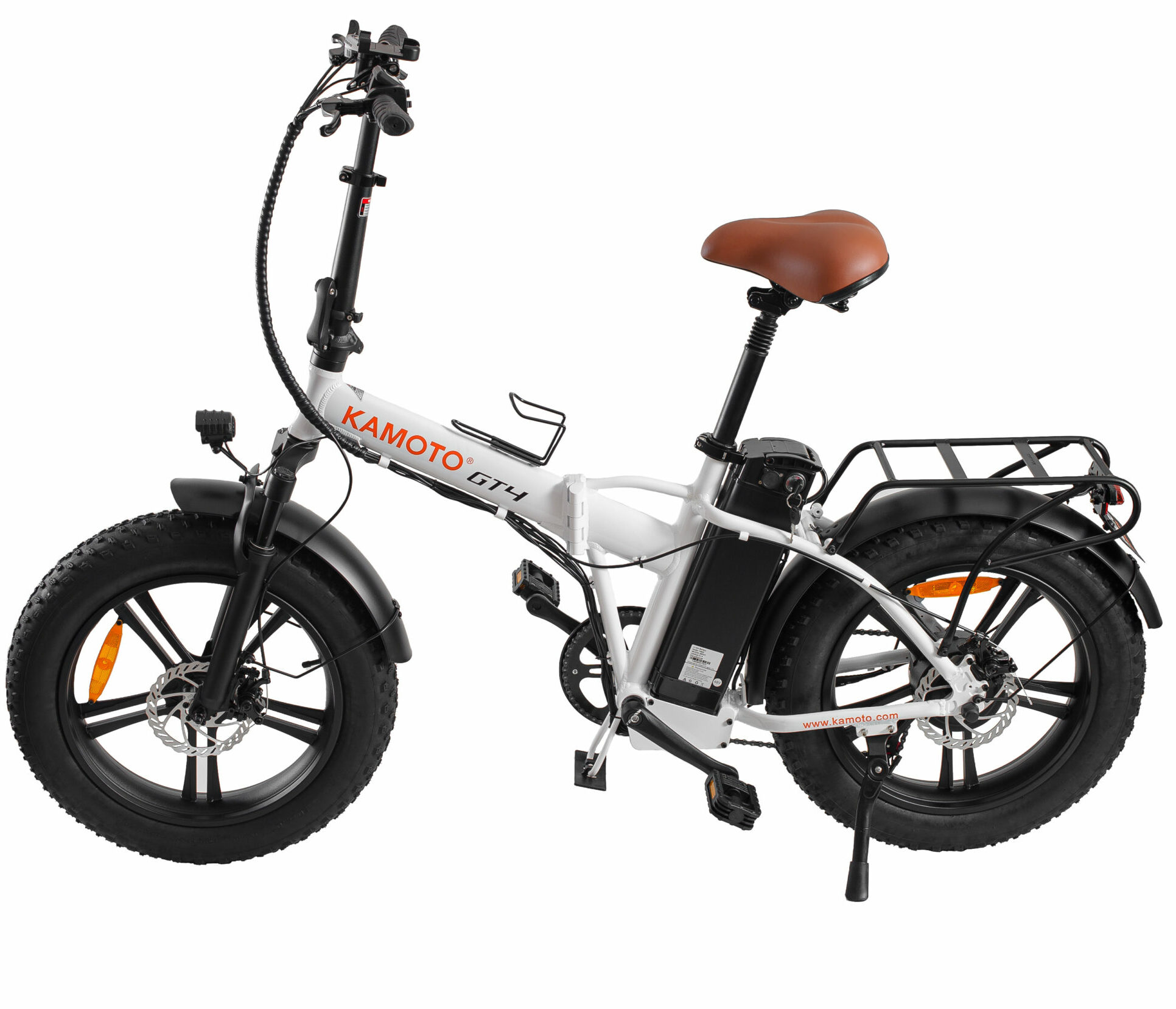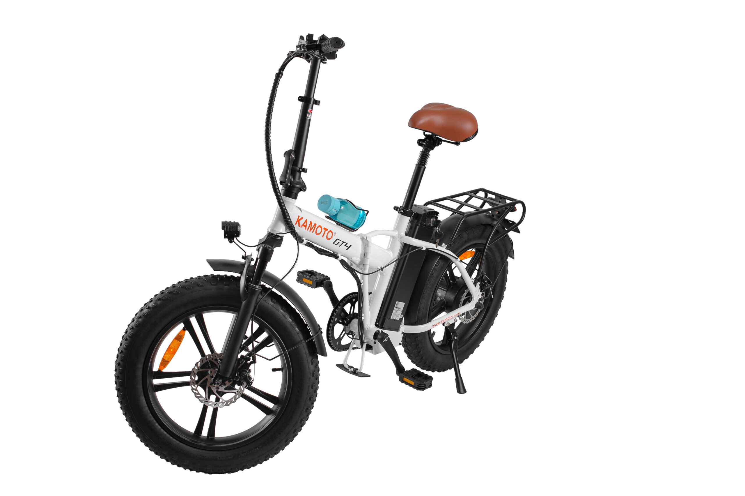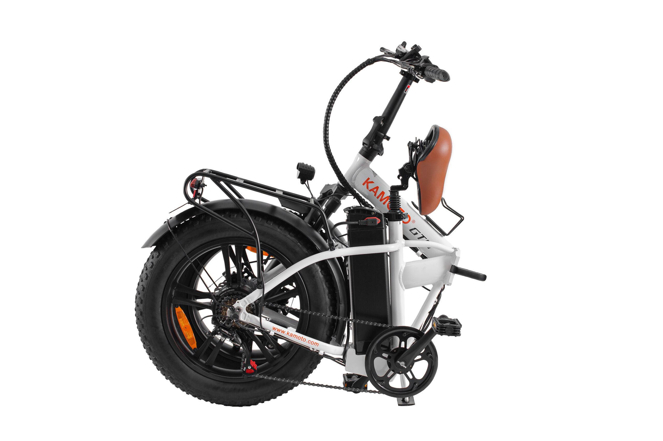 На электровелосипеде Kamoto GT4 – комфортно ездить на значительные расстояния; его легко складывать, переносить, перевозить и хранить. В багажнике обычного автомобиля он легко помещается и при этом ещё останется место для багажа.