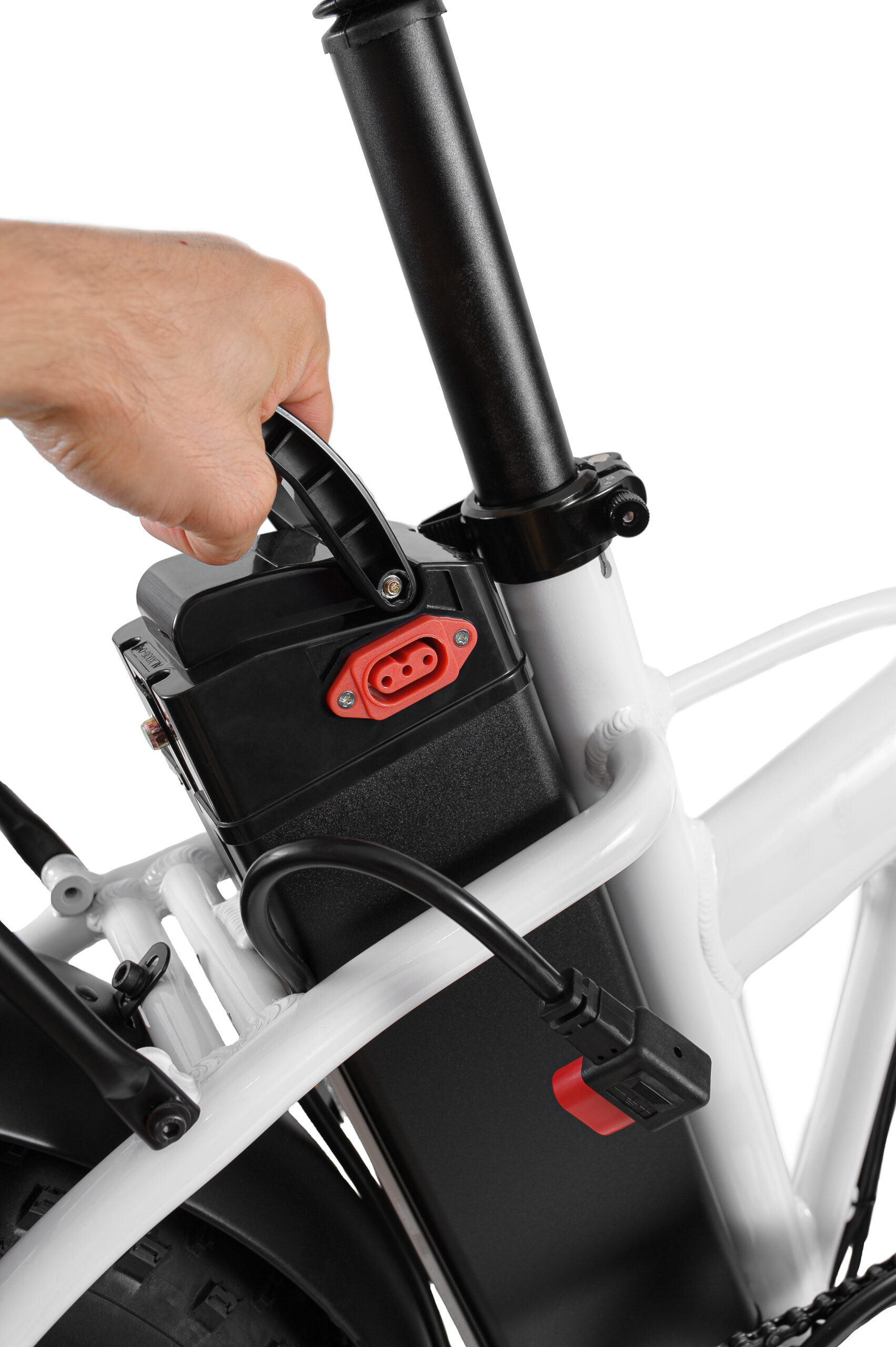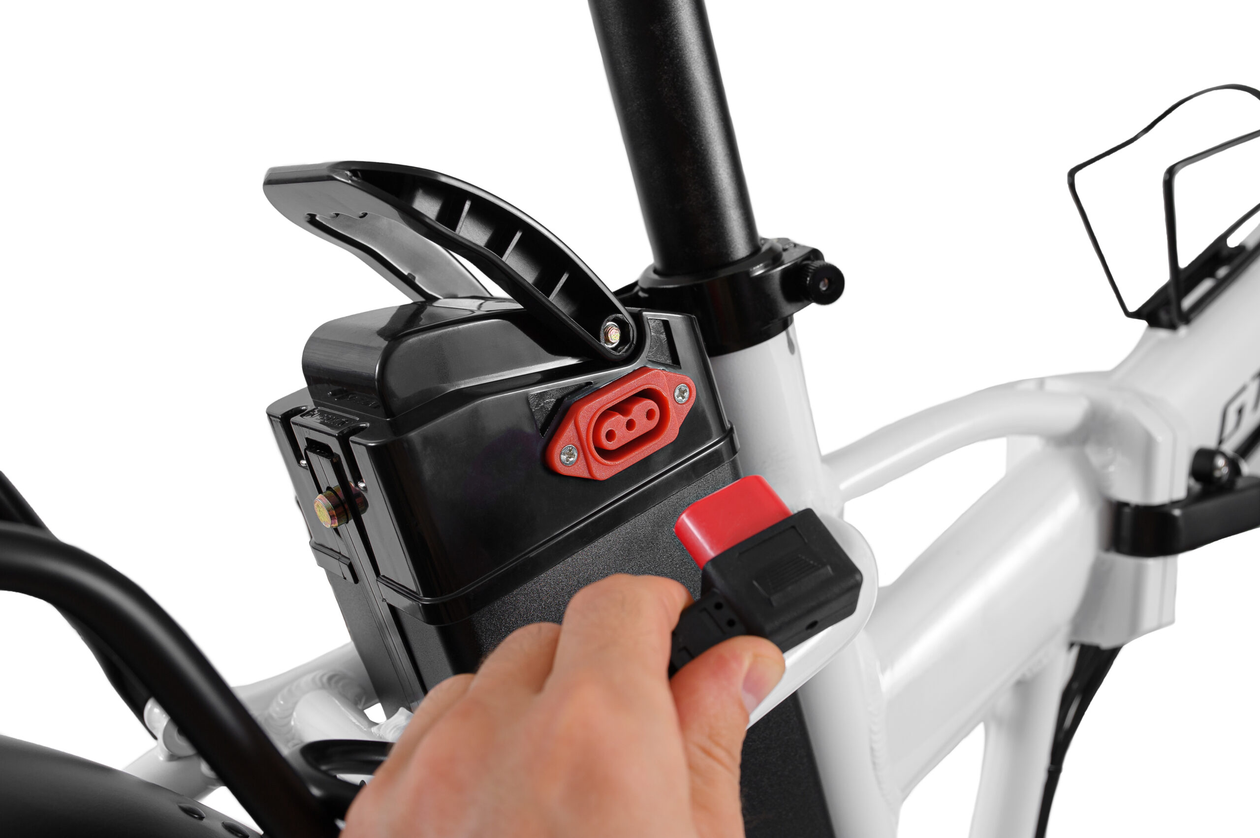 Бокс с аккумуляторами размещён за сиденьем и запирается на замок. Это обеспечивает правильную развесовку, защиту батареи от повреждения и кражи. Аккумуляторная батарея легко снимается для зарядки отдельно от велосипеда, или в качестве дополнительной меры предосторожности. Литий ионные аккумуляторные батареи обычно служат примерно 5 – 6 лет, а редукторные мотор колёса при правильной эксплуатации – больше 10 лет.