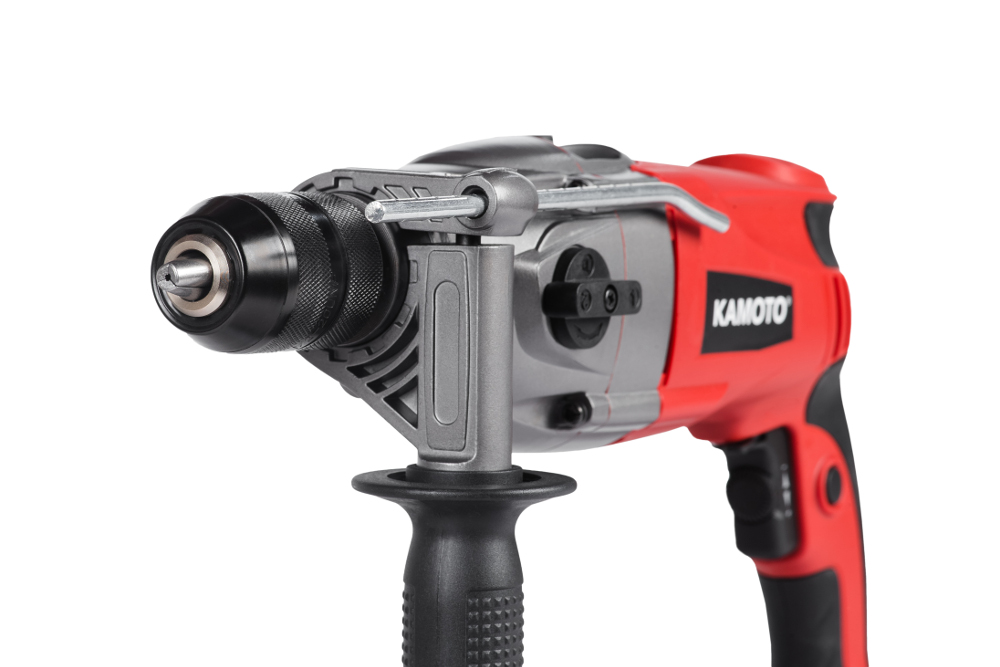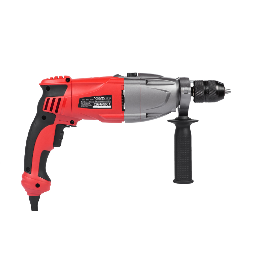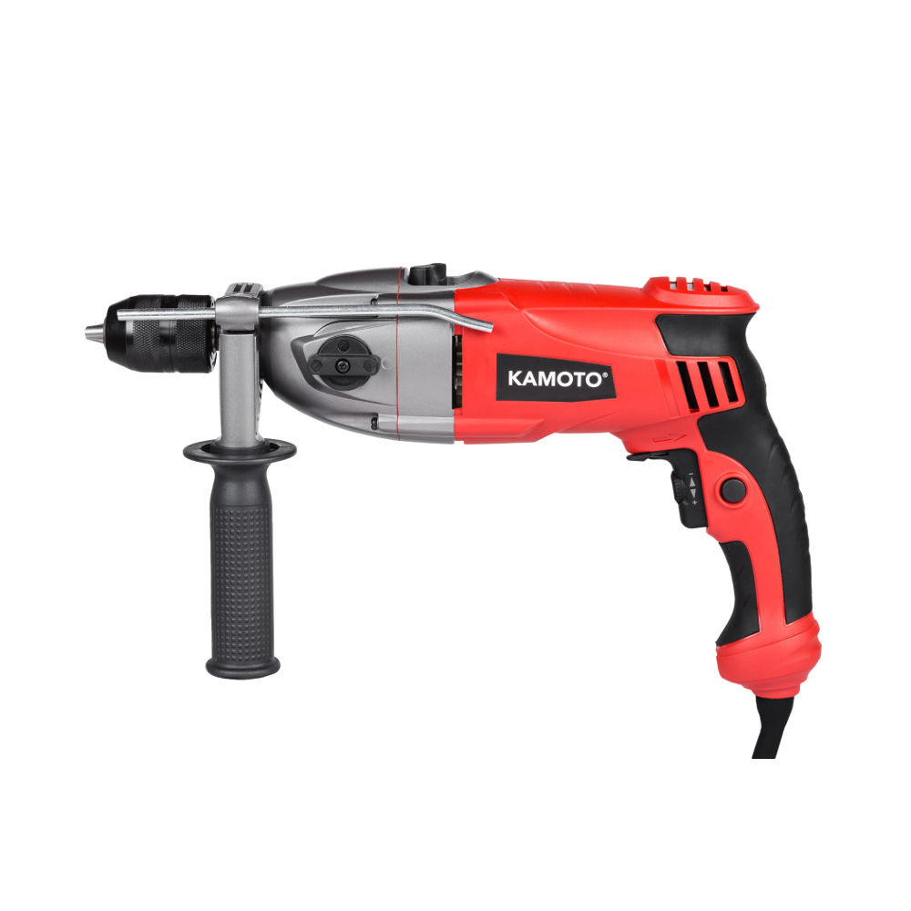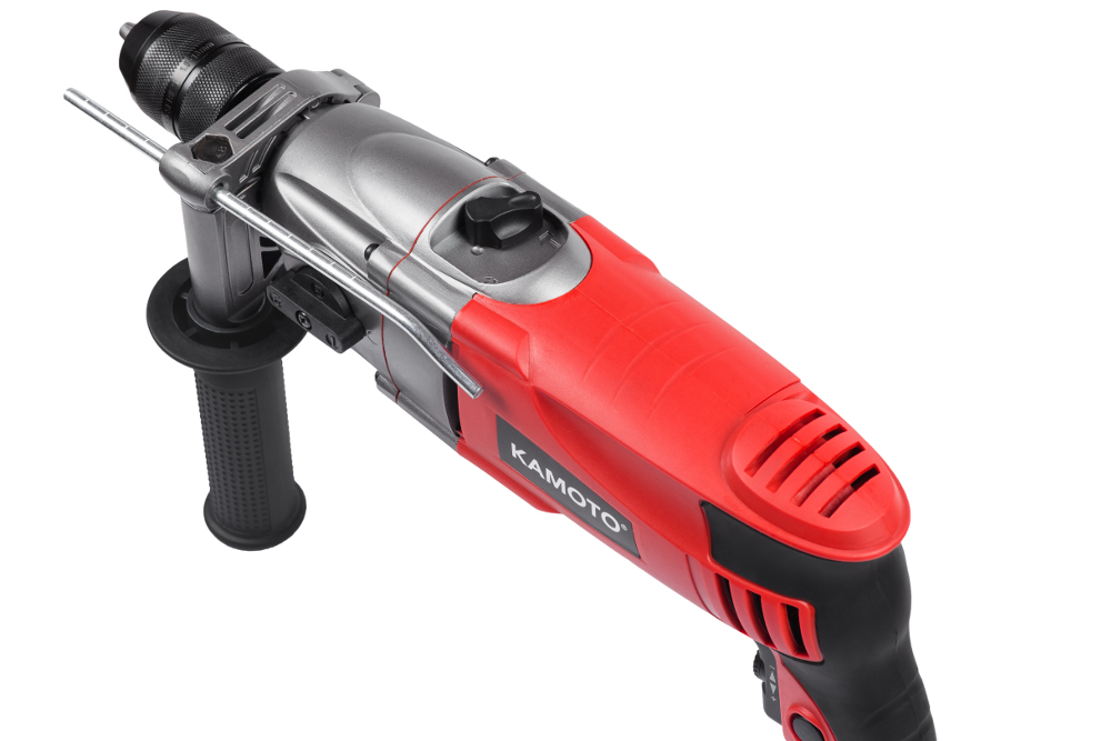 Ударная дрель KID1113 повышенной мощности 1100 Ватт с металлическим корпусом редуктора и быстрозажимным металлическим патроном. Эта модель позволяет делать не только точные отверстия в дереве или металле, благодаря функции удара она может сверлить отверстия в бетоне и кирпичной кладке.