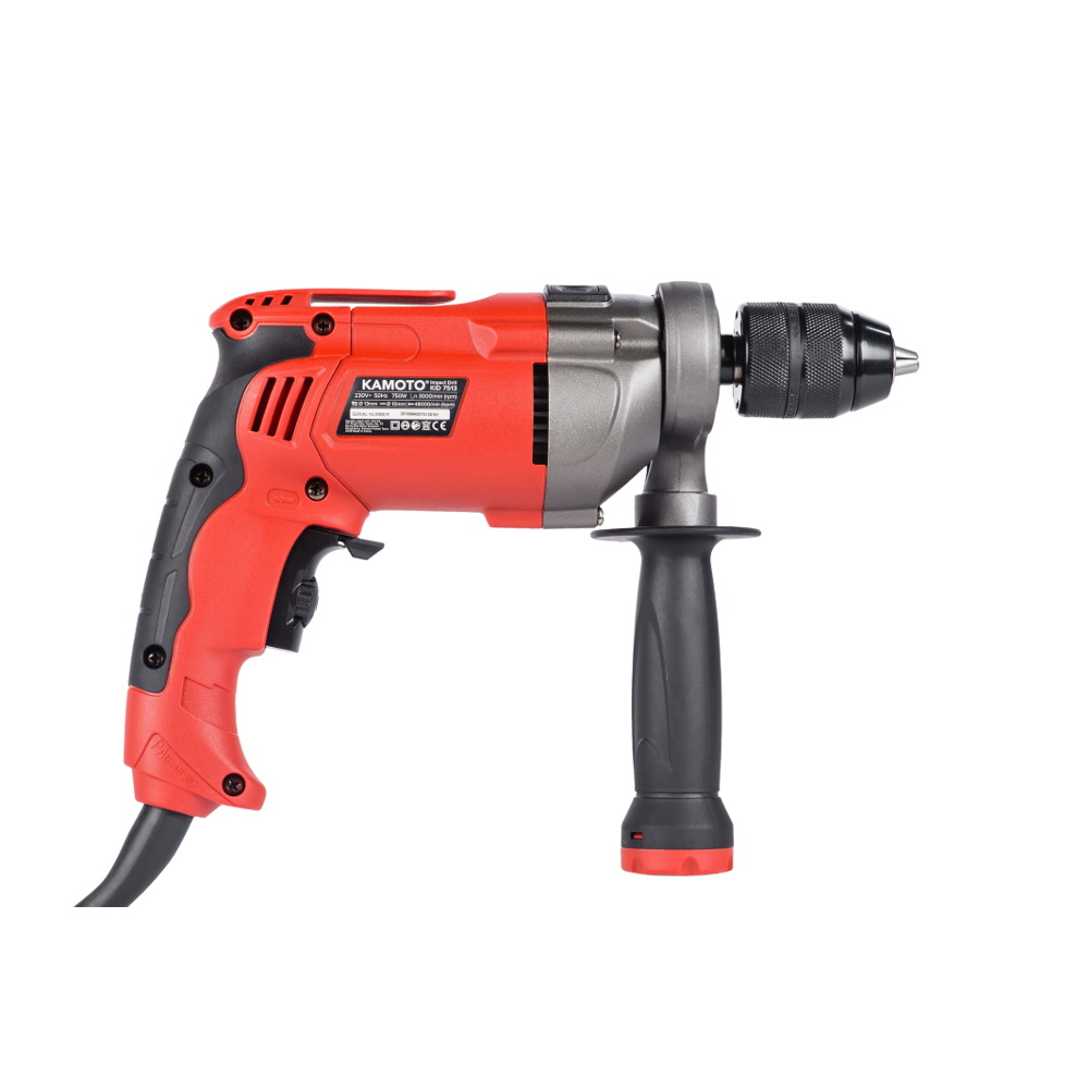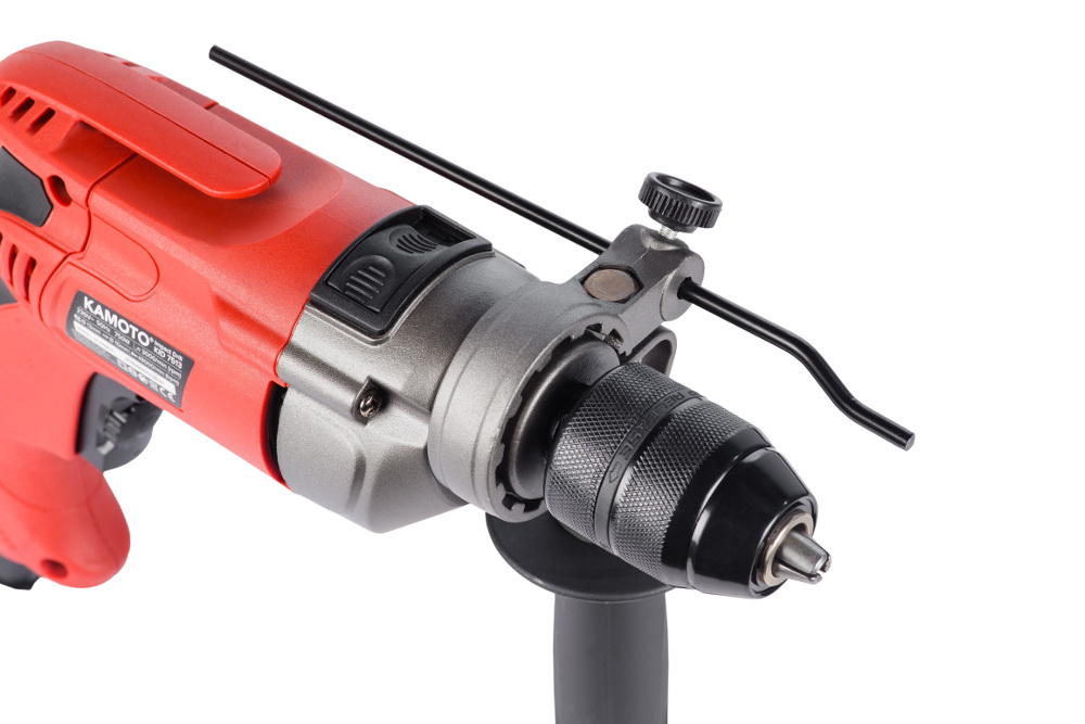 Ударная дрель KID7513 повышенной мощности с металлическим корпусом редуктора, быстрозажимным металлическим патроном и поясным креплением. Эта модель позволяет делать не только точные отверстия в дереве или металле, благодаря функции удара она может сверлить отверстия в бетоне и кирпичной кладке.