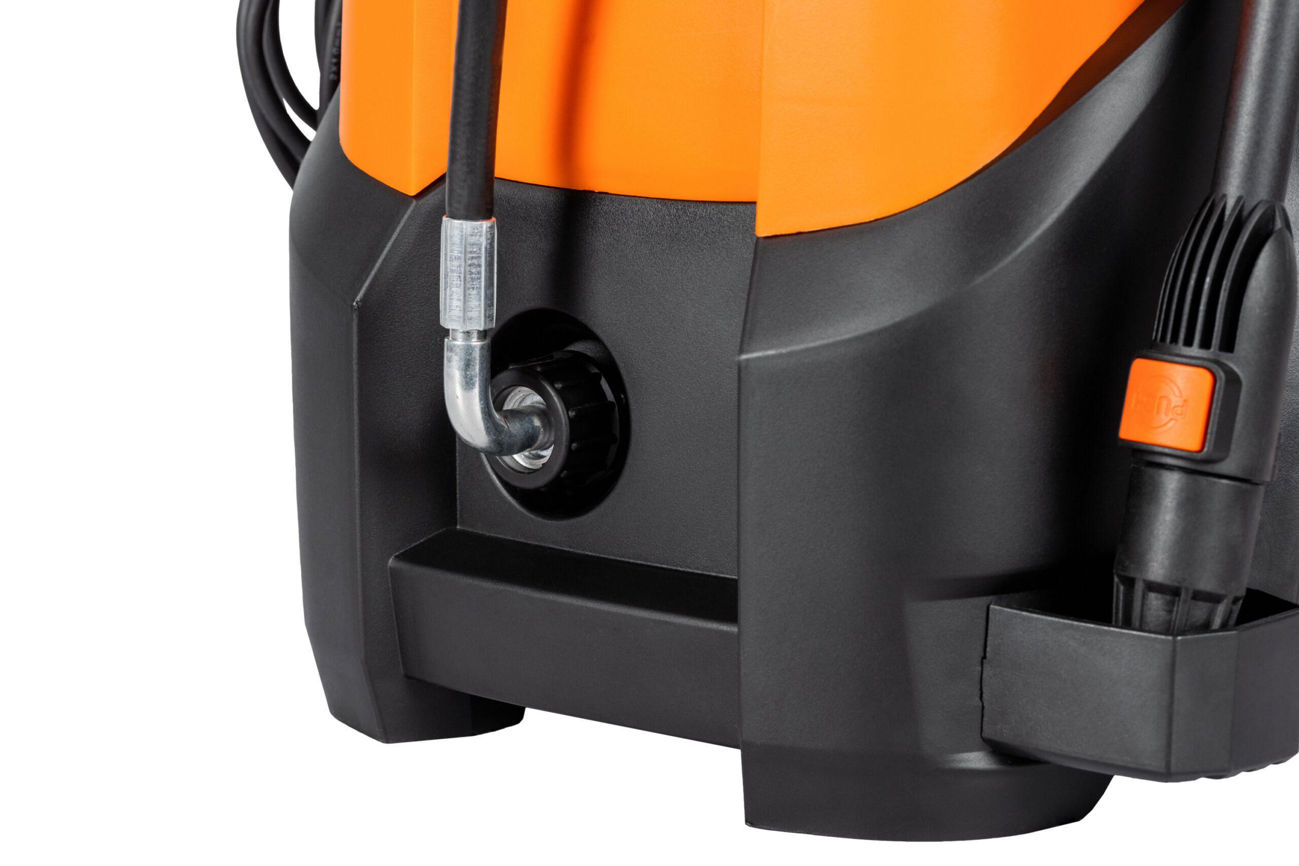 Комплектация: пласт. пистолет и удлинительная насадка, насадка веерная, шланг высокого давления 8 м, встроенный бак для моющего раствора, пеногенератор, фильтр грубой очистки