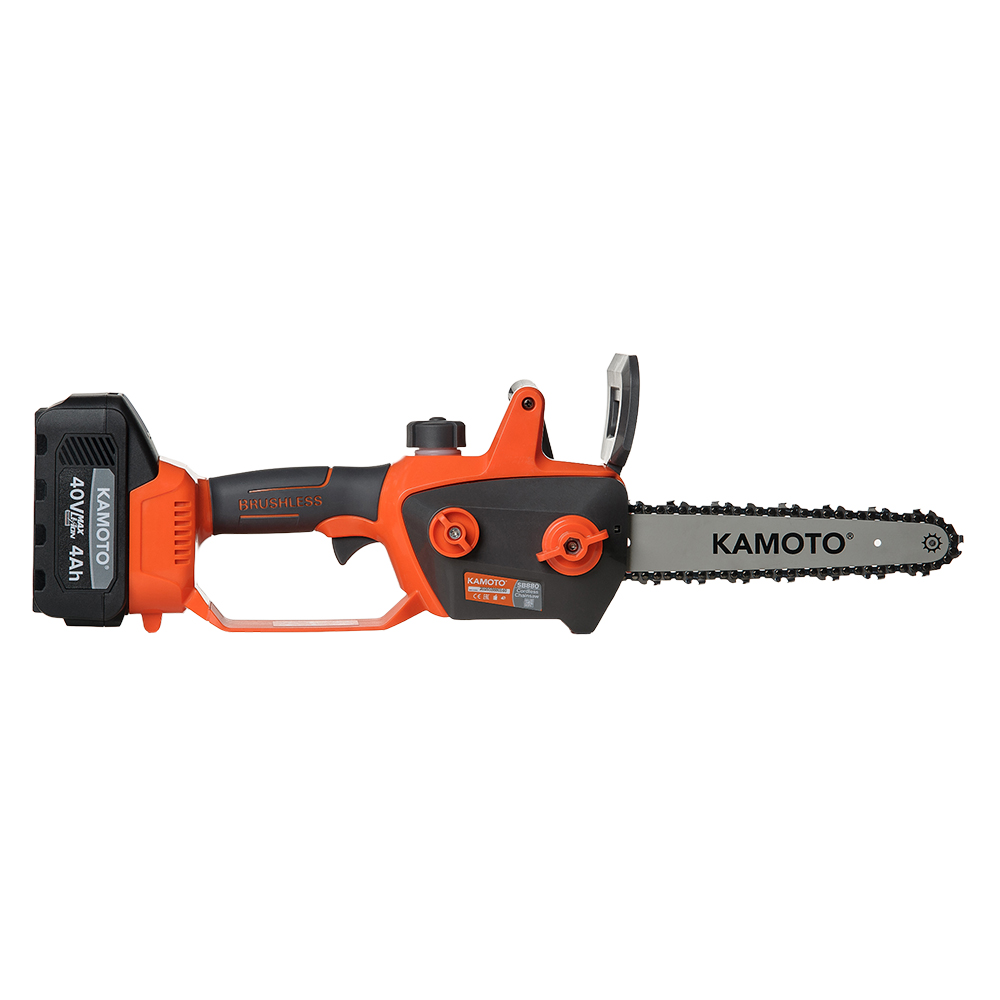 Аккумуляторная цепная пила KAMOTO SB880 предназначена для выполнения работ по распилу древесины в саду и для бытовых нужд. Модель оснащена бесщеточным двигателем с номинальной мощностью 880 Вт, работающим от аккумулятора 40 В. Такая конструкция обеспечивает надежность, мобильность, низкий уровень шума и удобство эксплуатации.