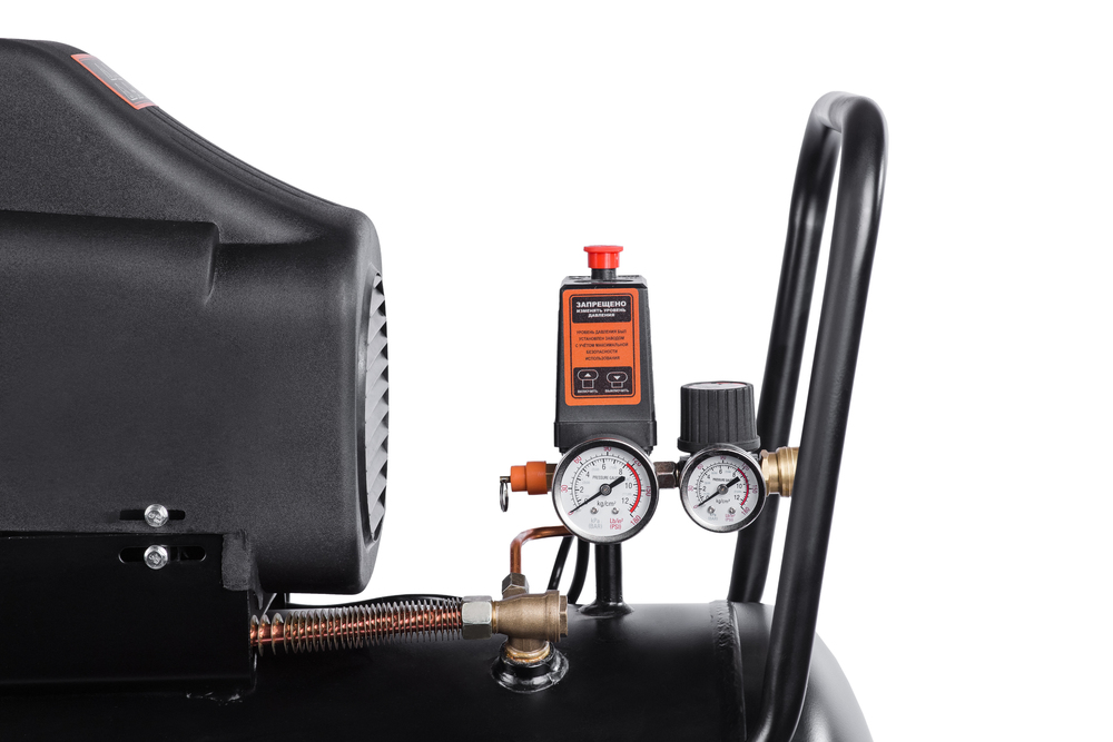 • Регулятором, который поможет задать необходимое давление для работы потребителей сжатого воздуха.