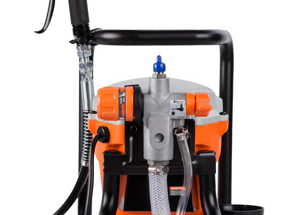 Покрасочный аппарат предназначен для безвоздушного распыления под высоким давлением, красок низкой и средней вязкости, вязкости, не большей чем вязкость «кефира». Могут применяться краски на основе растворителей и масляные краски. С этим покрасочным аппаратом Вы быстро и без проблем можете окрасить большую площадь в короткие сроки.
