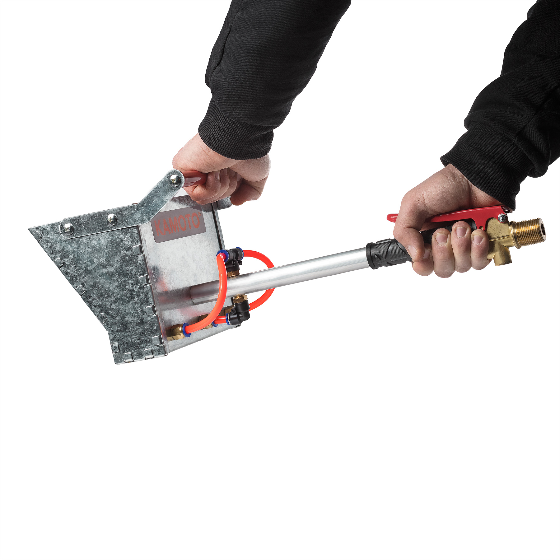 При помощи штукатурного хоппер-ковша Kamoto HG3400, любой даже неквалифицированный строитель может осуществить штукатурные работы на вертикальных поверхностях за более короткий срок в сравнении с ручной штукатуркой. Модель оснащена дополнительной ручкой для удобства работы, а длина рукоятки обеспечивает процесс штукатурки в узких проемах, коридорах и при угловых зонах. Технология нанесения штукатурных растворов на стены, фасад здания и пр., осуществляется через компрессор с постоянным давлением. Благодаря технологии нанесения штукатурки с помощью хоппер-ковша, расход смеси значительно сокращается, за счет тонкого слоя и уменьшения затрат материала на отходах.